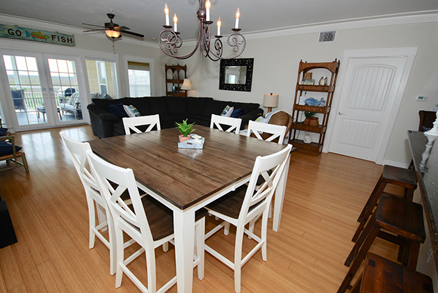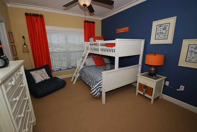 Sleeping accommodations include a king bed in the master bedroom, a queen bed in the 2nd bedroom and a twin over full bunk bed in the 3rd bedroom.