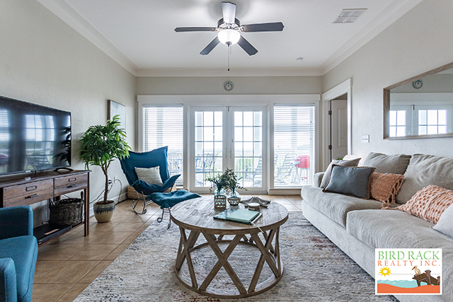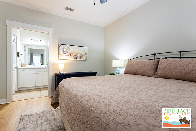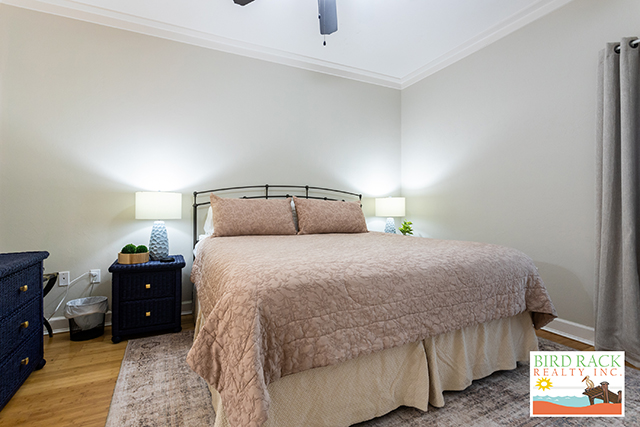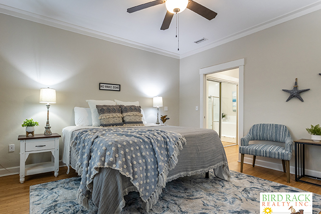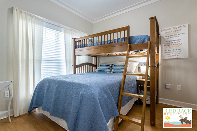 Sleeping accommodations include a king bed in the master bedroom, a queen bed in the 2nd bedroom and bunk beds in the 3rd bedroom.
