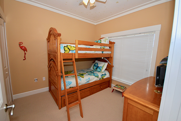 Sleeping accommodations include a king bed in the master bedroom, a queen bed in the 2nd bedroom and bunk beds in the 3rd bedroom.