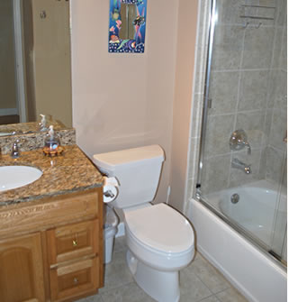 Australian cypress hardwood floors throughout the living room, dining room and hallway. Granite countertops in the kitchen and both bathrooms.